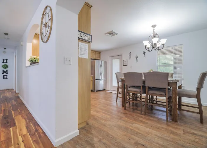 The Cozy House Villa Austin is your serene retreat nestled just a short drive from the vibrant heart of Austin, Texas. This charming accommodation is situated a convenient 15 kilometers from Austin-Bergstrom International Airport, making it an ideal choice for both leisure and business travelers. Guests will appreciate the proximity to the city's dynamic attractions, all while enjoying the tranquil atmosphere that the Cozy House provides.